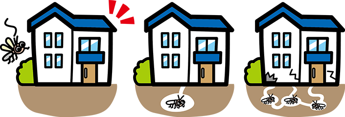 シロアリの被害を受けてしまうと家の耐震性、耐久性に問題が生じます。