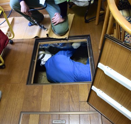 床下収納庫などから入ります。なければ、畳を上げて入ることも。